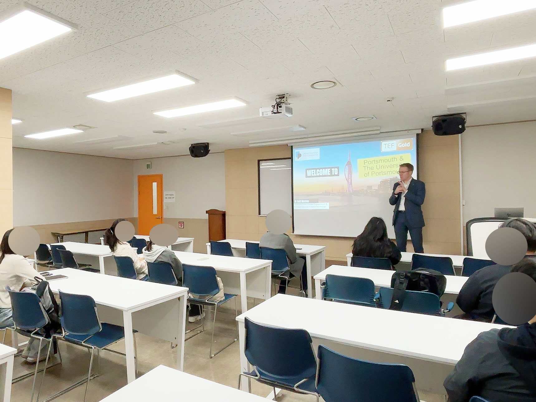 영국 포츠머스대학교(University of Portsmouth) 스포츠운동과학심리학과 교수님께서 디지틀조선일보 국제교육센터를 직접 방문하시어, 포츠머스대학교 진학을 희망하는 학생들을 위한 세미나를 진행해 주셨습니다.