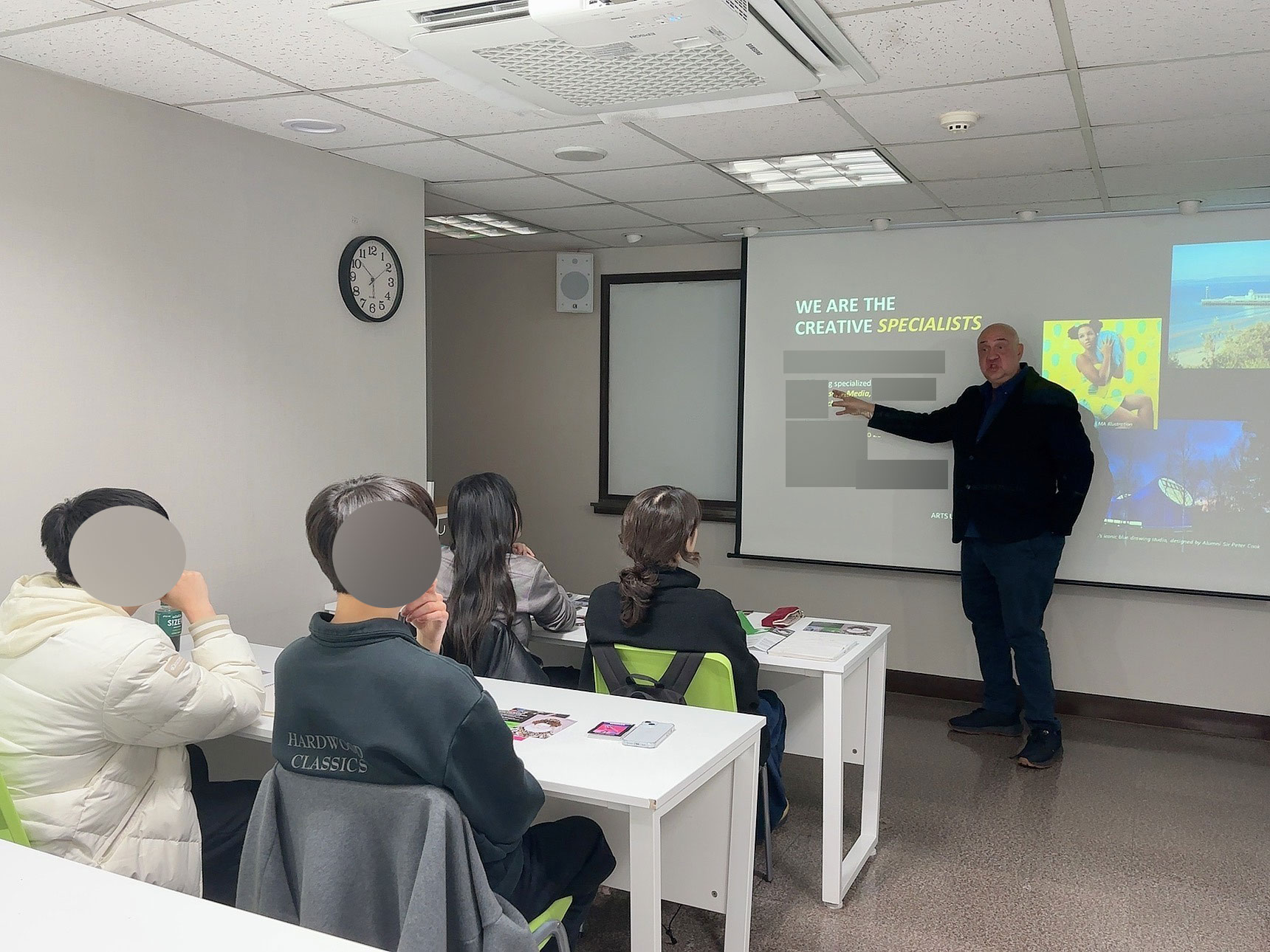 영국 본머스예술대학교(Arts University Bournemouth, AUB) 디자인학과 교수님께서 디지틀조선일보 국제교육센터를 직접 방문하시어, 예술 계열 진학을 준비 중인 학생들을 대상으로 세미나 및 포트폴리오 피드백 세션을 진행해 주셨습니다.