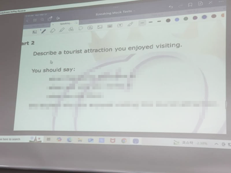 1:1 스피킹 수업도 하시는데요. 질문을 답하는 시간을 통해 아이엘츠 기출문제들을 전부 답해볼 수 있습니다.