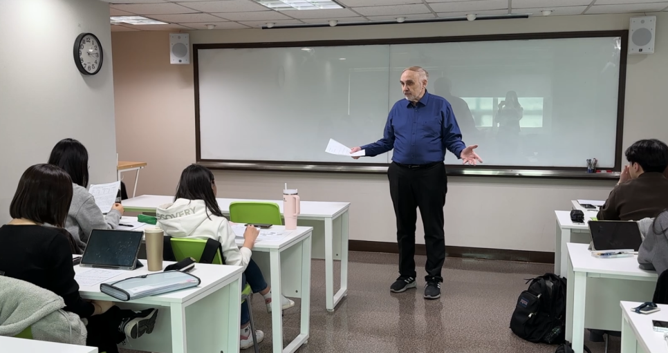 P 선생님께서는 스피킹 수업을 진행하십니다.