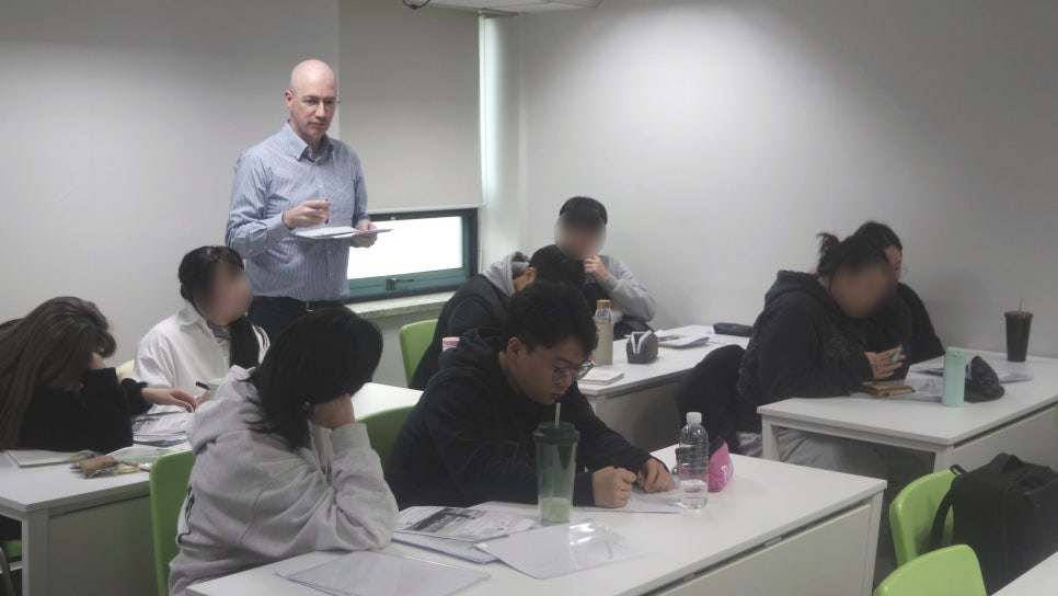 영어 수업은 아이엘츠를 취득하기 전후로 수업 내용이 크게 바뀝니다. 처음에는 아이엘츠를 취득하는 것에 목표를 두고 공부해요.